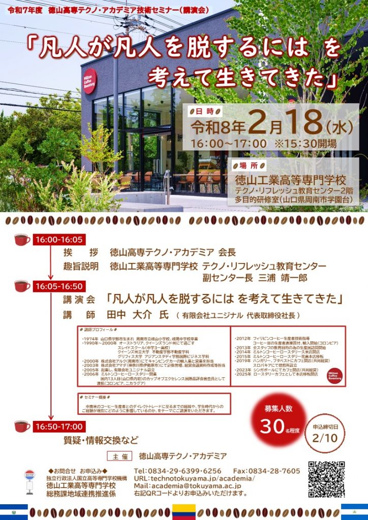 令和7年度徳山高専テクノ・アカデミア 技術セミナーを開催します!(2月18日)